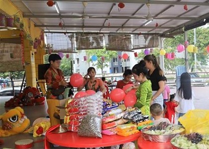 Trong không khí ấm áp và đầy ắp tiếng cười, các cháu thiếu nhi vô cùng thích thú với màn múa lân và tham gia nhiều trò chơi dân gian như nhảy bao bố, kéo co, đập niêu...